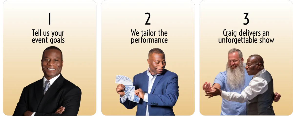His performances are designed to complement corporate events, not overpower them while keeping audiences engaged, entertained, and present.